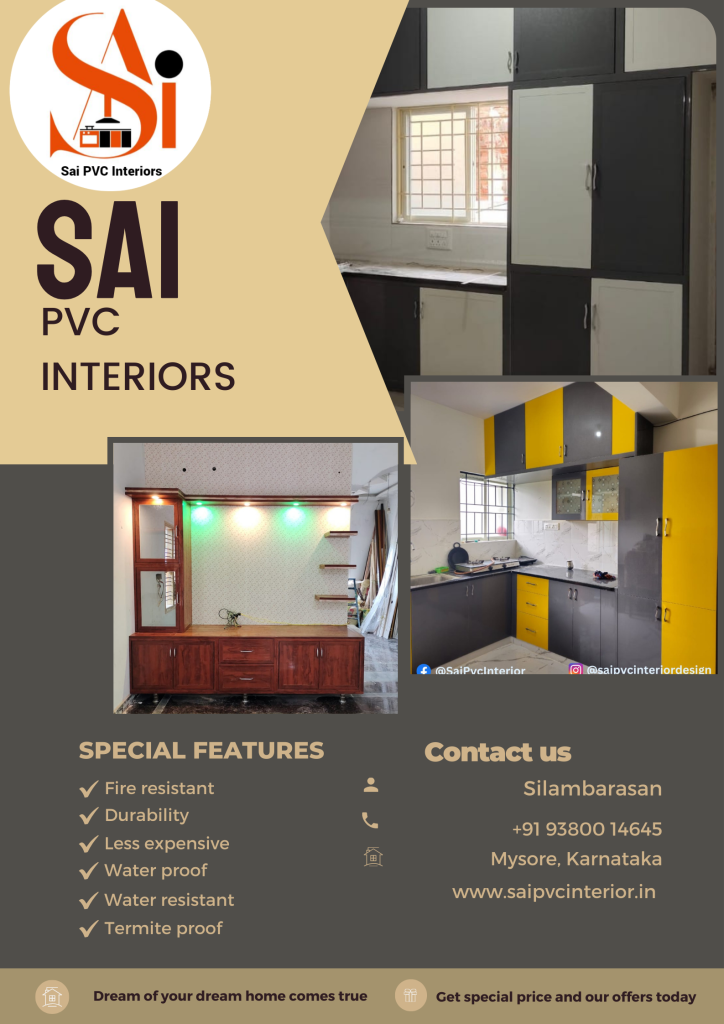 Sai PVC Interiors is a popular PVC and UPVC interior company in Bengaluru, Karnataka. Hand-craftsmanship is the pride of every artist. Our designs embody the roots of inspiration from our customers. We always believe that the fusion of contemporary and tradition promotes excellence and quality in our work. Over the years of our journey, we have magnificently completed 800+ projects in and around Bengaluru. Sai PVC Interiors is founded by Mr.Silambarasan a dynamic, young and energetic man who has risen by experiencing all the odds and even in the same field. We have led our cornerstone and developed it as a big endeavor with great team efforts and dedication. We always believe that home is place which should become haven for every individual, When you cook, dine, work, sleep or rest, the environment should inspire you and reflect your personality and dreams. Home should always be a comfortable place and we strive smartly, not hard, to make it right. We also make sure you will definitely fall in love every moment when you see your dream infrastructure in real.